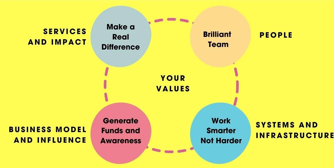 We work with you to develop strategy that balances making a difference with generating income alongside developing your people and the systems you need to be effective.